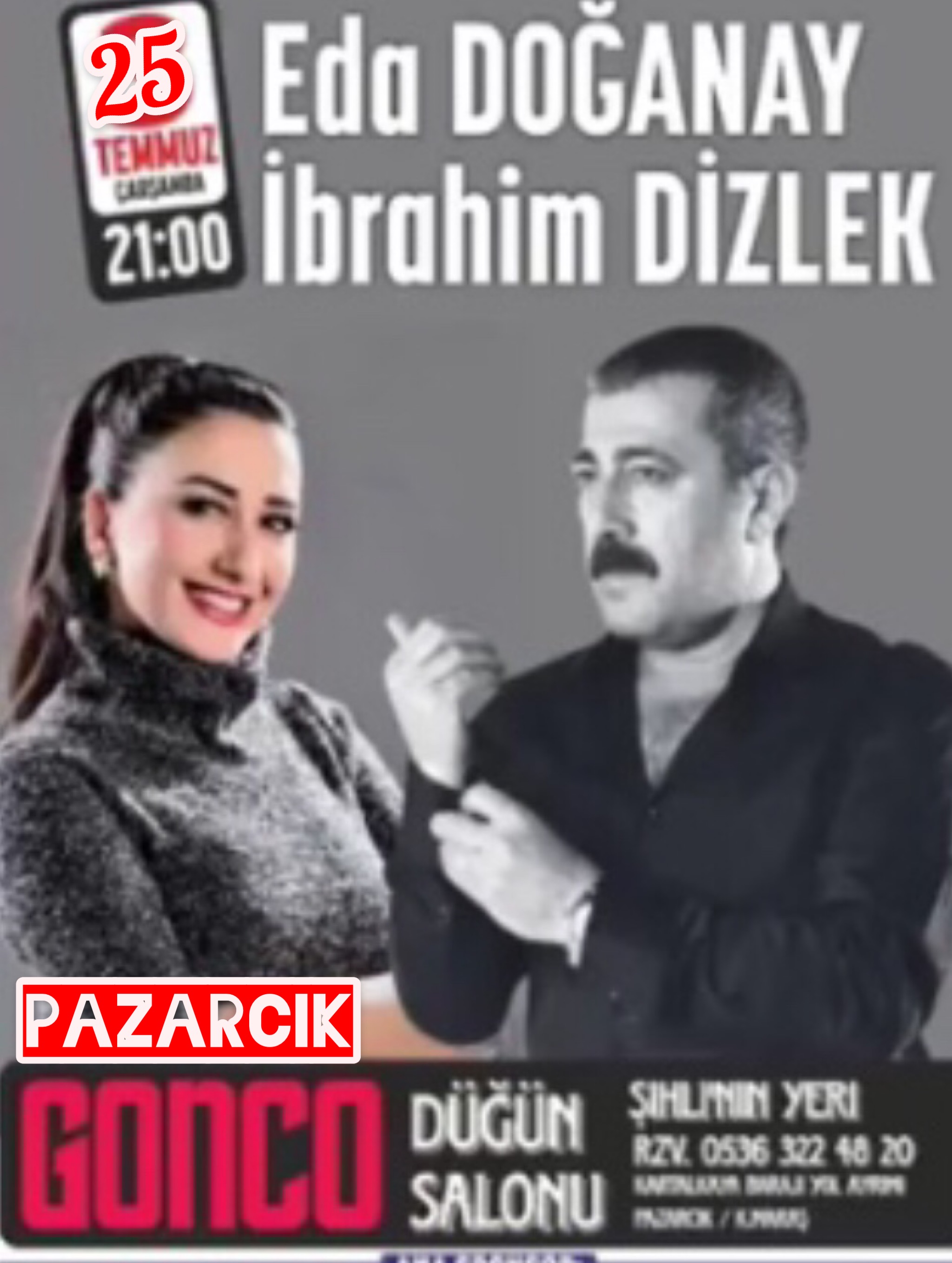 Pazarcık Konseri Eda Doğanay ibrahim Dizlek in resmî sayfasında ertelenen konser 25 Temmuz 2019 tarihine alınmıştır.